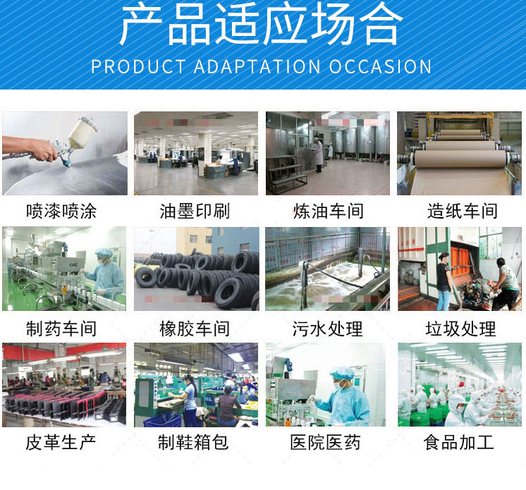 焊接、顏料、塑料、電子、輪胎、鋼板預處理、粉煤灰、陶瓷、煉化、橡膠、水泥、鈦白粉、倉頂物料等揚塵場合。
